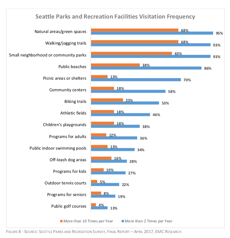 At the same time, when the City of Seattle’s 2017 Parks and Open Space Plan identified what park facilities Seattleites visit most frequently, small neighborhood or community parks came in number three on the list, indicating that these small parks are being used by residents.
