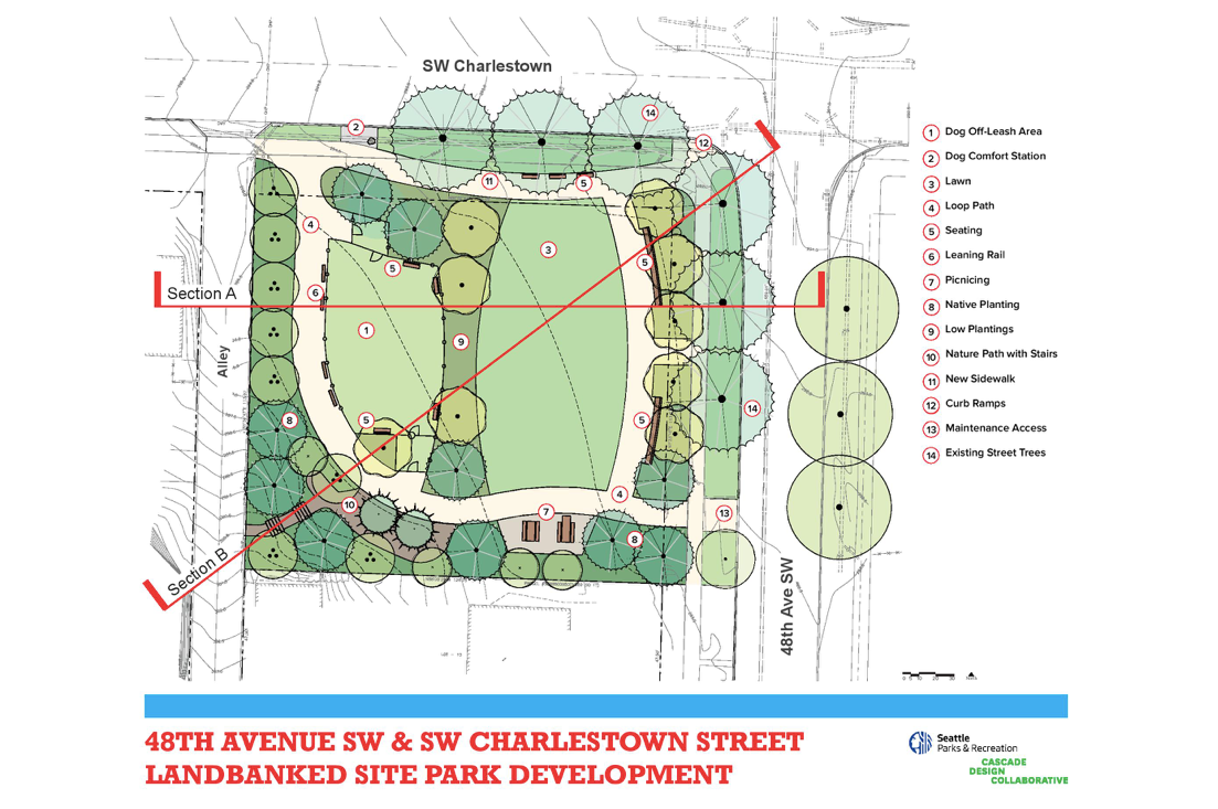 Seattle Parks is currently seeking community feedback on its park concepts for 48th and Charlestown site. The survey is open until May 24th.