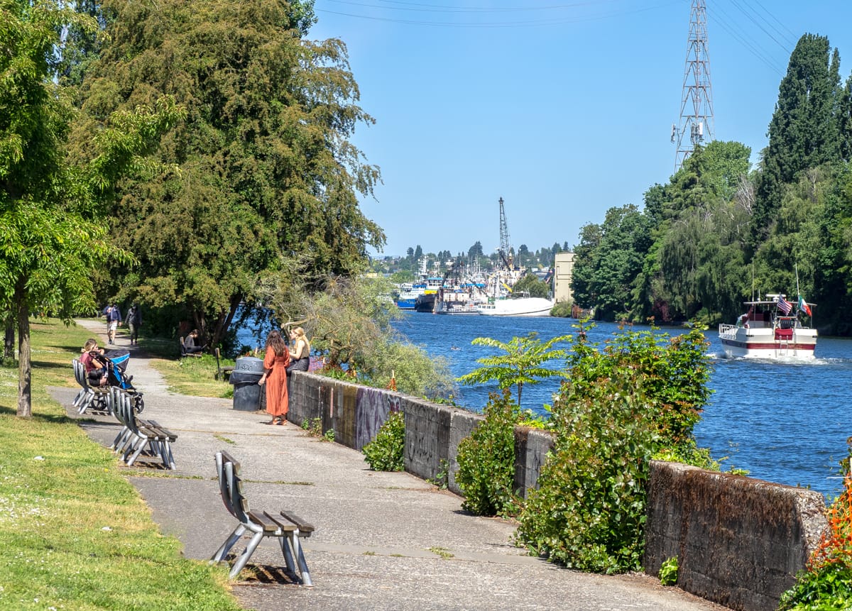 Moving west along the South Ship Canal Trail you find a series of five street ends that blend together and have many shared characteristics: 3rd Avenue North and Etruria Street (#93), West Cremona Street (#94), West Bertona Street (#95), Queen Anne Avenue North (#96), and 3rd Avenue West (#97). These characteristics include immersion in the one of the coziest parts of the ship canal, ample benches and picnic tables, a park-like setting, and a shady tree canopy.