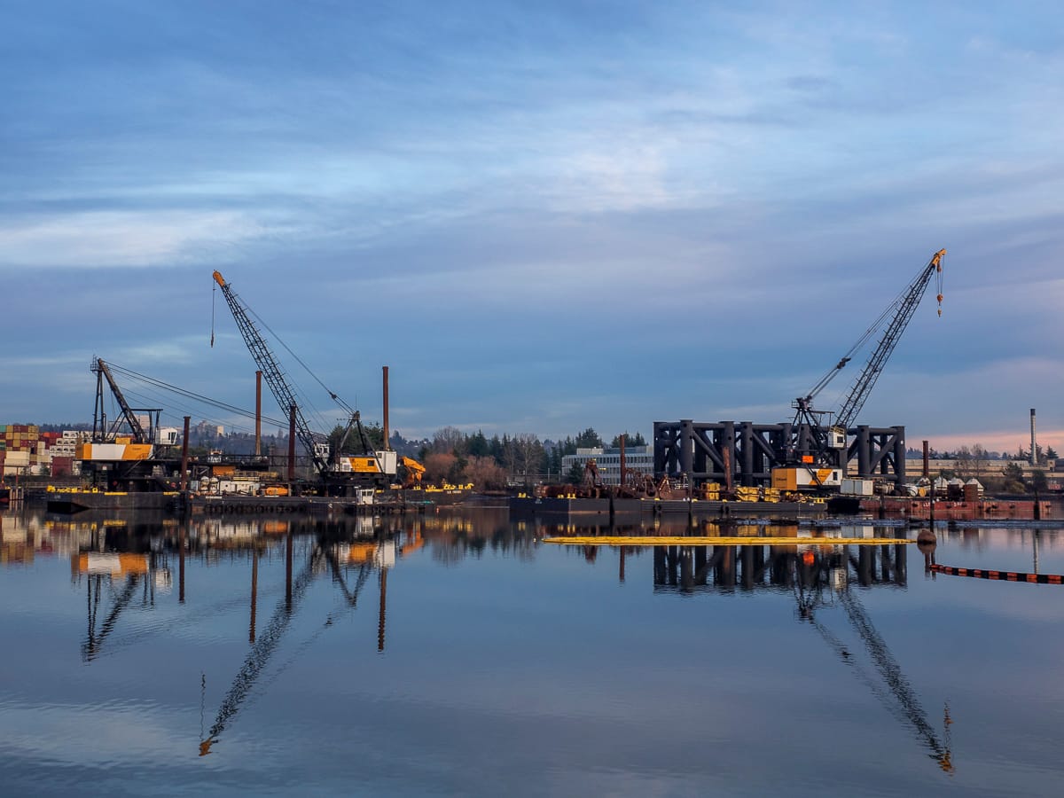 Most of the street ends featured here are adjacent to maritime and industrial uses and include views of shipping, dredging, and land-based industries such as cement manufacturing. Chances to engage the Duwamish River via restored shorelines and habitat are also possible.