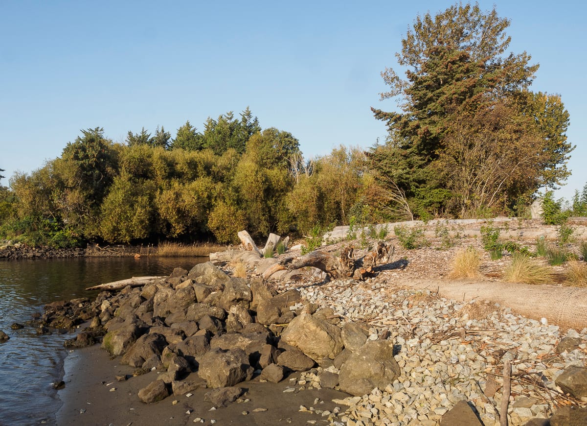 Spokane Street: Street Ends #13, #18, and #19Solitude is on hand at Southwest Spokane Street/Freeway (#13). Tucked beneath the West Seattle Bridge, the street end offers some magnificent views of our working waterfront if one looks to the north.Another pair of street ends, but of a different nature. This pair run parallel to the street and are not ends at all. Regardless, Southwest Spokane Street/Freeway (#18) and Southwest Spokane Street (#19) provide a popular fishing spot and unsurpassed views of Seattle’s main concentration of container terminals.West Marginal Way: Street Ends #22 and #23As it approaches Elliott Bay, the Duwamish River was straightened and dredged in order to accommodate the industrial uses that line its shore, and it becomes the Duwamish Waterway. Part of this legacy includes remediation of the decades-long dumping and leaching of toxic waste into the water; the dredges are an evocative reminder of past and current clean-up efforts.Southwest Alaska Street (#22) and SW Edmunds Street (#23) are both nestled within a lush riparian corridor. The northernly of the pair, #22, leads to a network of pathways that trace the waters edge. Southwest Edmunds Street gives access to the he?apus [this is the correct spelling] Village Park & Shoreline Habitat, a Port of Seattle park, highlighting an important cultural site along the shore of one of the last remaining bends of the Duwamish River before it was channelized.East Marginal Way: Street Ends #24 and #26, Street End #25 and Diagonal AvenuePublic access to the Duwamish is limited, and often has to squeeze itself between the dominant maritime and manufacturing uses. Although modest – a concrete slab and bench as well as controlling for invasive plants that limit access and views – South Oregon Street (#24) provides a significant break in the wall of its less accessible neighbors.Unlike many of its fellows, South Fidalgo Street (#26) offers distant views both of the aquatic and terrestrial environments where landward views are frequently blocked by fences and thick plantings that discourage the curious visitor’s attentions.When funding is available, street end shorelines like Diagonal Avenue South (#25) provide opportunities for intensive efforts in riparian restoration, including shoreline stabilization. The street end preserves access to the Diagonal Avenue South Public Shoreline Access. While not part of the SDOT program and not a street end, it is none-the-less a splendid park that is impeccably manicured and welcoming.South Park: Street Ends #28, #34, #35, and #37Furnishings, recreational access, shoreline and landscape improvements – all are priorities of Friends of Street Ends and all can be found at South Michigan Street/1st Avenue Bridge (#28). While not bucolic as the shorelines along Lake Washington or Puget Sound, the amenities provided at #28 more than address the challenges of its being situated below a busy bridge.Seattle Street End #34, Riverside Drive, provides a small viewing area tucked among restored native plantings. Nearby, one of the more developed Duwamish shorelines is found at 8th Avenue S/S Portland Street (#35). This street end includes water access, terraced and bench seating, and art. It is also linked to Street End #34 via a gravel path. Which brings us to Seattle’s farthest south street end, #37 at 10th Avenue South/South Kenyon Street. It has open, unobstructed views, perfect for watching ships pass.