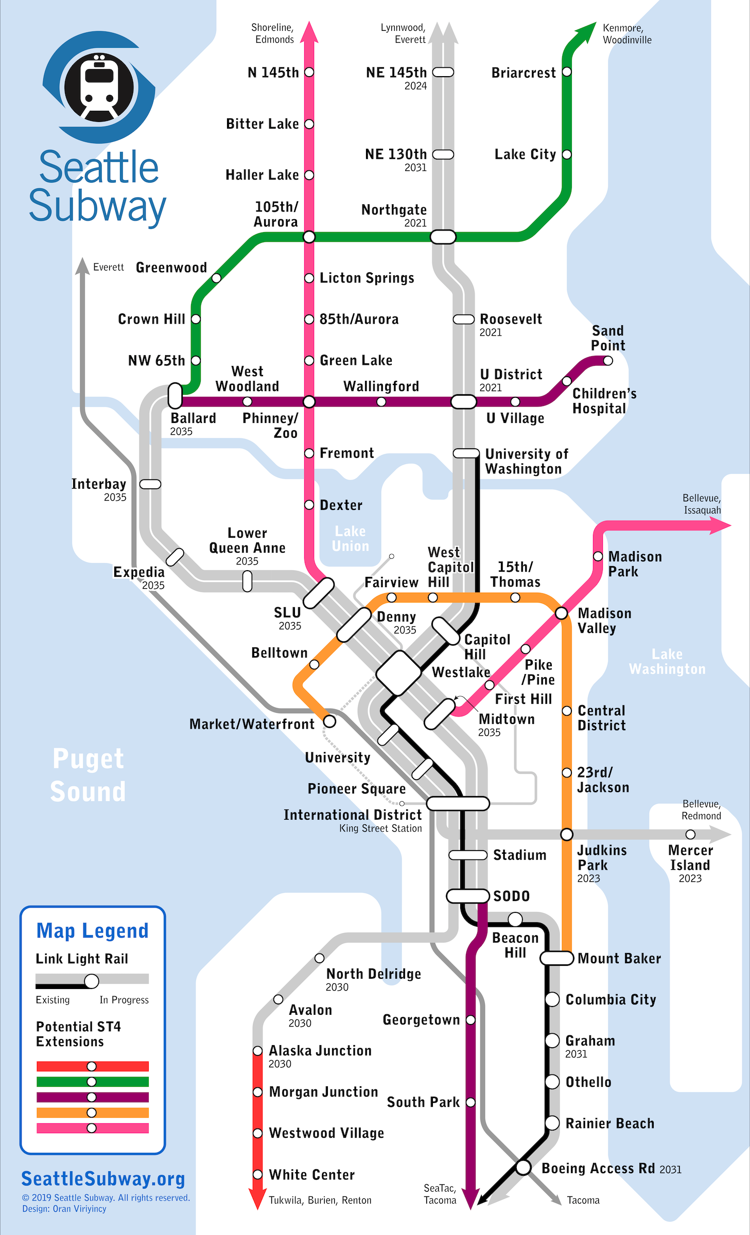 “More people than ever will be riding Link in 2024 as major stations open in Northgate, Bellevue, Redmond, Federal Way, and Lynnwood,” Seattle Subway wrote in the press release. “Critically, we will still have a window to design major ST3 stations and infrastructure for transfers and future expansion, since they must be planned that way from the start. The only way to avoid short-changing the potential of our investments in ST3, including a brand-new downtown subway tunnel, is to plan ahead with a Seattle-focused ST4 plan.”