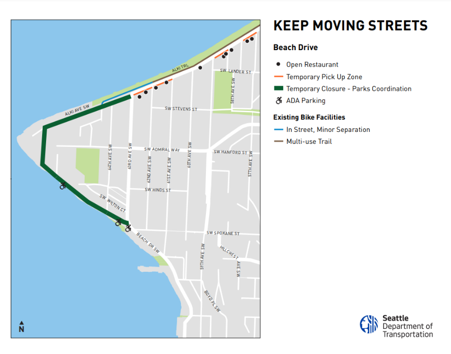 SDOT also responded to the specific complaints about lack of access for school kids visiting Alki Point on field trips by creating specific loading zones that will be able to be used by buses. It’s also important to note that beachside parking along the south end of Constellation Park, near 63rd Avenue SW, still remains in place.