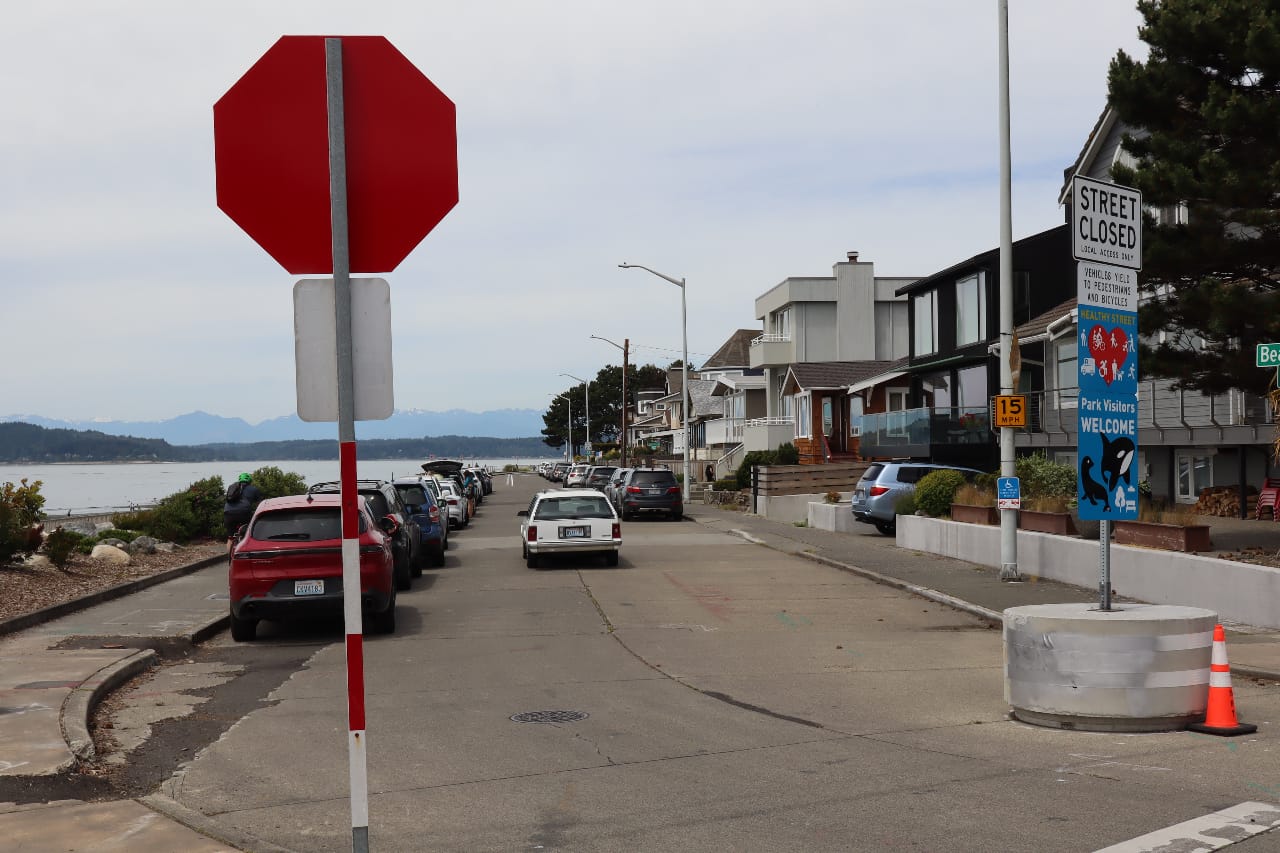 A neighborhood street alongside a popular natural beach in West Seattle was transformed early this month with concrete barriers that send a clear message about who the City is prioritizing with the design of the street. The changes along Beach Drive SW on the south end of Alki Point, represent the latest attempt by the Seattle Department of Transportation (SDOT) to provide more space for walking, biking, and rolling, after a pandemic pilot program proved popular.