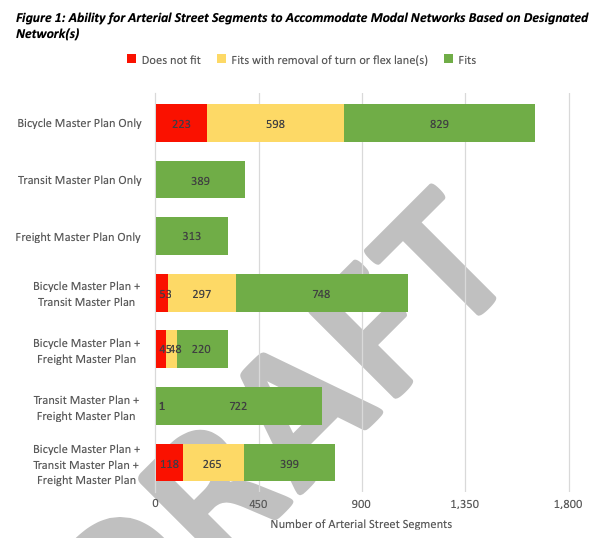 The technical roots of the Seattle Transportation Plan go back to 2020, when SDOT’s planning division tried to find a way to resolve potential conflicts between future uses of road space on a citywide level, looking at where the existing separate plans all envisioned using the same space. As the documentation revealed, this was mostly a “conflict” between the city’s ambitious 2014 Bicycle Master Plan and… everything else, mostly parking. On a virtually insignificant segment of the city’s roadways were future bikeways in conflict with transit, or walking, or transit plans. That work underlined how the primary barrier holding the city back isn’t street space, but timidity.