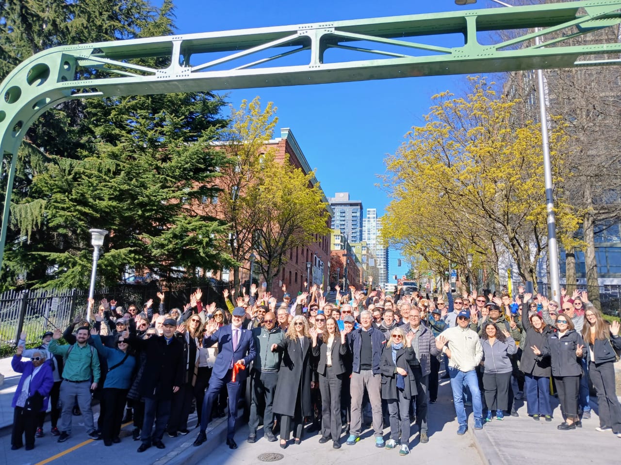 Seattle Mayor Katie Wilson also cut the ribbon on a two-block upgrade of Bell Street that had been open for a while, but was awaiting its final capstone: a reclaimed sign bridge from the former Alaskan Way Viaduct. While initial outreach on how to reimagine this short stretch at the foot of Bell Street found strong support for full pedestrianization, Seattle's Office of the Waterfront ultimately went ahead with adding a two-way bike lane connecting Elliott Way with the existing Bell Street Park, which is actually considered a greenway.