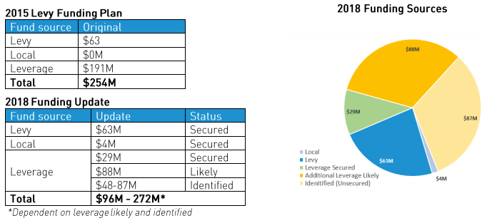 The main cause in this huge difference was a heavy dependence on federal grant funds in the original levy budget, made at a time when grants were doled out much more quickly and when Seattle had been receiving a record amount of federal dollars for its projects, according to SDOT staff.