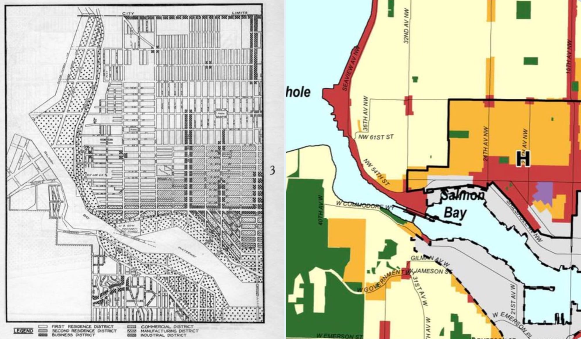 Finally, some maps require a comparison to really appreciate the glory of how infuriating they can be. The city’s first zoning map was developed in 1923. Looking at it 99 years later for an area like Ballard, it is possible to trace the exact same lines dividing commercial, manufacturing, and sprawling one-plexes. A century and 400,000 people later, these lines are somehow still there. They’ve outlasted 23 mayors and a tunnel boring machine named for the first mayor elected after the zoning was put in place.