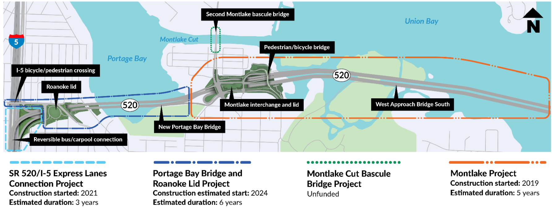 Along with contingency funding and cost increases for related 520 projects — including an additional $32 million for the Montlake Lid and $10 million for the connection to the express lanes at I-5 — the state needs to authorize an additional $725 million in funding for the overall program, including $71 million for the current biennial budget. That funding is on top of an added $406 million that the legislature allocated in the 2022 Move Ahead Washington transportation package that covered other cost increases for the 520 program.