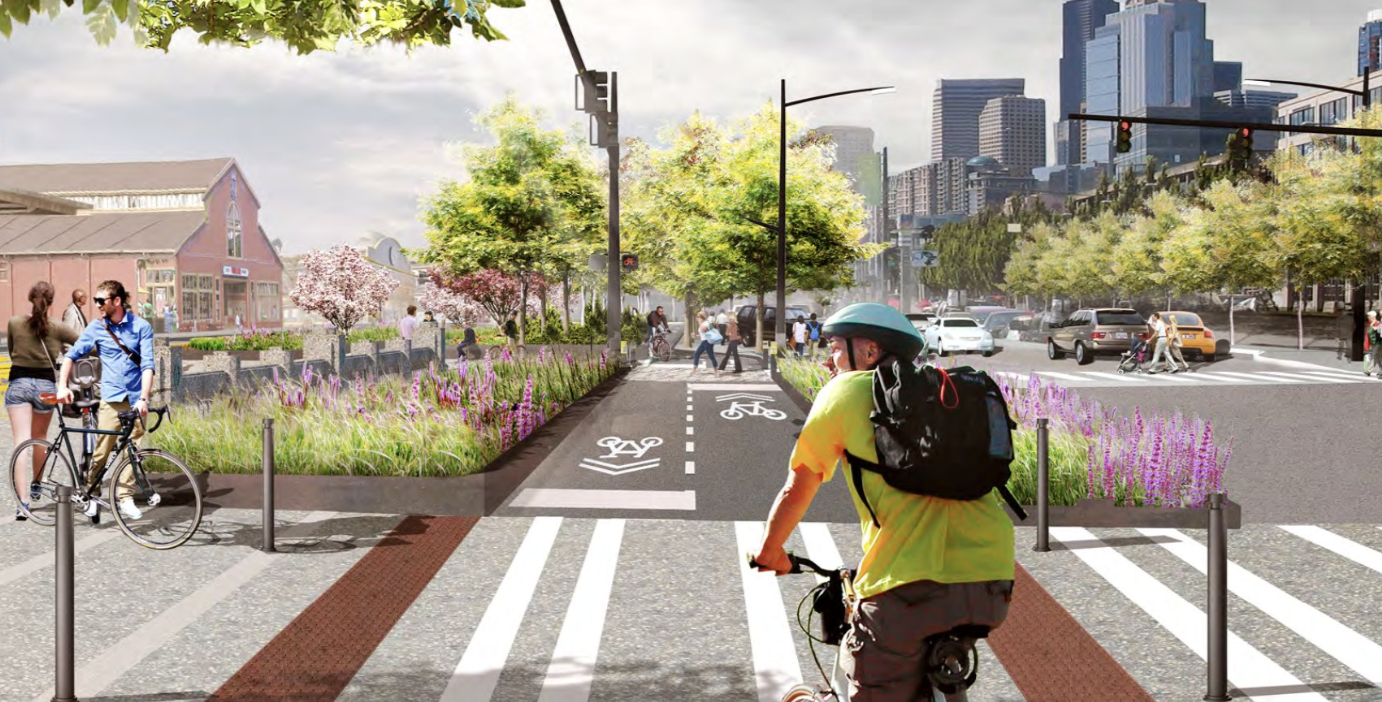 The City also confirmed that some of the features seen as shortcomings were actually intentional design choices. “Note that the narrowing, as well as the curves provided near intersections, are intentional safety features that encourage bicyclists to slow down as they approach the crosswalks,” Picat said. “When traveling at slower speeds, bicyclists have more time to react to pedestrians in the crosswalk.” Alaskan Way’s vehicle lanes don’t include similar design elements to slow traffic, it must be noted.