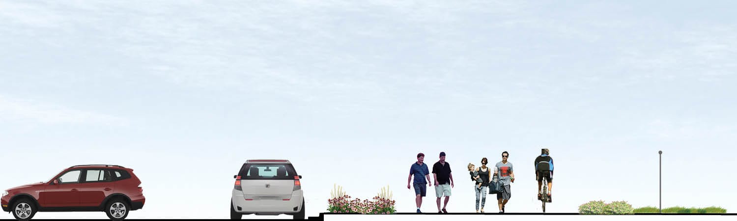 The first option would make a hard turn on the path toward the station and provide a staircase to the trail. This would result in a 6.5% grade ramp, reducing conflicts with the trail but aggravating energy required for people going uphill. This could also mean fast bike movements to the station plaza and inconvenient to people with mobility challenges trying to reach the trail.