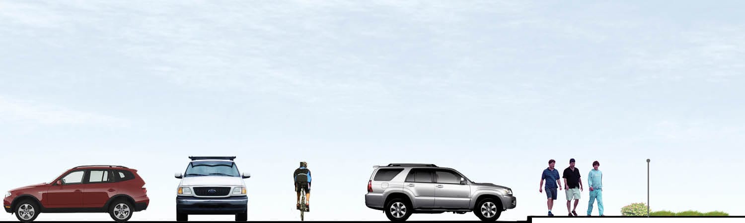 For the west side connection, the bridge has two key options to reach 1st Ave NE. The first option would require minimal interventions to NE 148th St. A small pedestrian trail would be constructed on the north side of the street, which is currently just a parking lot drive aisle. In-street bike sharrow markings would also be added with parking retained. The second option would go much further to create a 16-foot-wide multi-use trail connection and reduce some parking for the drive aisle.