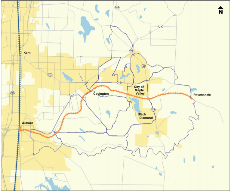 Whether or not we urbanists think it’s a good idea, population is growing in former rural places in the Maple Valley. With that growth has also come an increasing demand to expand the roadways through the region to meet their transportation demands. However, expanding roads is not actually likely to produce much congestion relief in the long-term and is also antithetical to our climate goals of reducing auto travel. Fortunately, the Stampede Pass rail line runs through Covington. Restored service there could provide improved transit and other access to folks through the valley to places like Auburn. Perhaps this would take a little more stress off the roads than simply widening them. There is at least some interest in this idea as it has been studied recently.