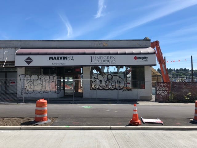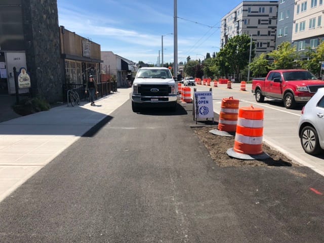 Construction of the trail has interrupted business at local favorites along Market Street. This has prompted the Ballard Alliance to request the city reconsider repaving further sections of Market Street until a more robust economic recovery is underway. In the mean time, Kiss Cafe has a lovely giant roll up window, which makes for a pleasant stop inside a restaurant for the first time in four months.