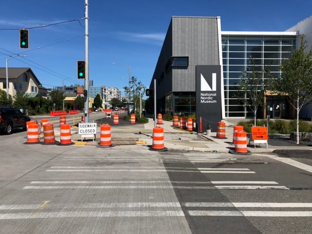 At the moment, the most difficult chicane in the trail is 26th Avenue NW at the entrance of the National Nordic Museum. We did witness a few cyclists plow through the very thin yellow ropes that mark off the construction area. Pictures withheld to avoid mockery and lack of me turning around fast enough.
