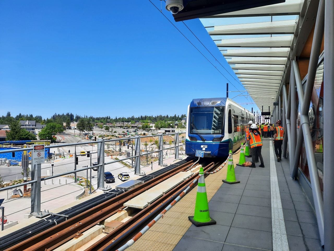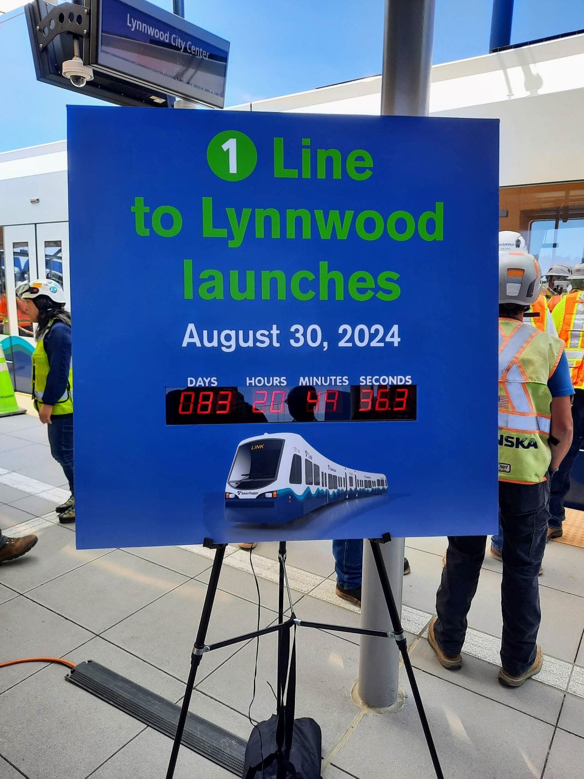 Sound Transit held a ceremony Friday to celebrate the start of pre-revenue testing for the 8.5-mile Lynnwood Link light rail extension in anticipation of the line’s grand opening on August 30. Dignitaries stood on the platform at Lynnwood City Center Station next to a countdown clock that noted the 83 days to launch, which has ticked down to just 80 days as of Monday.