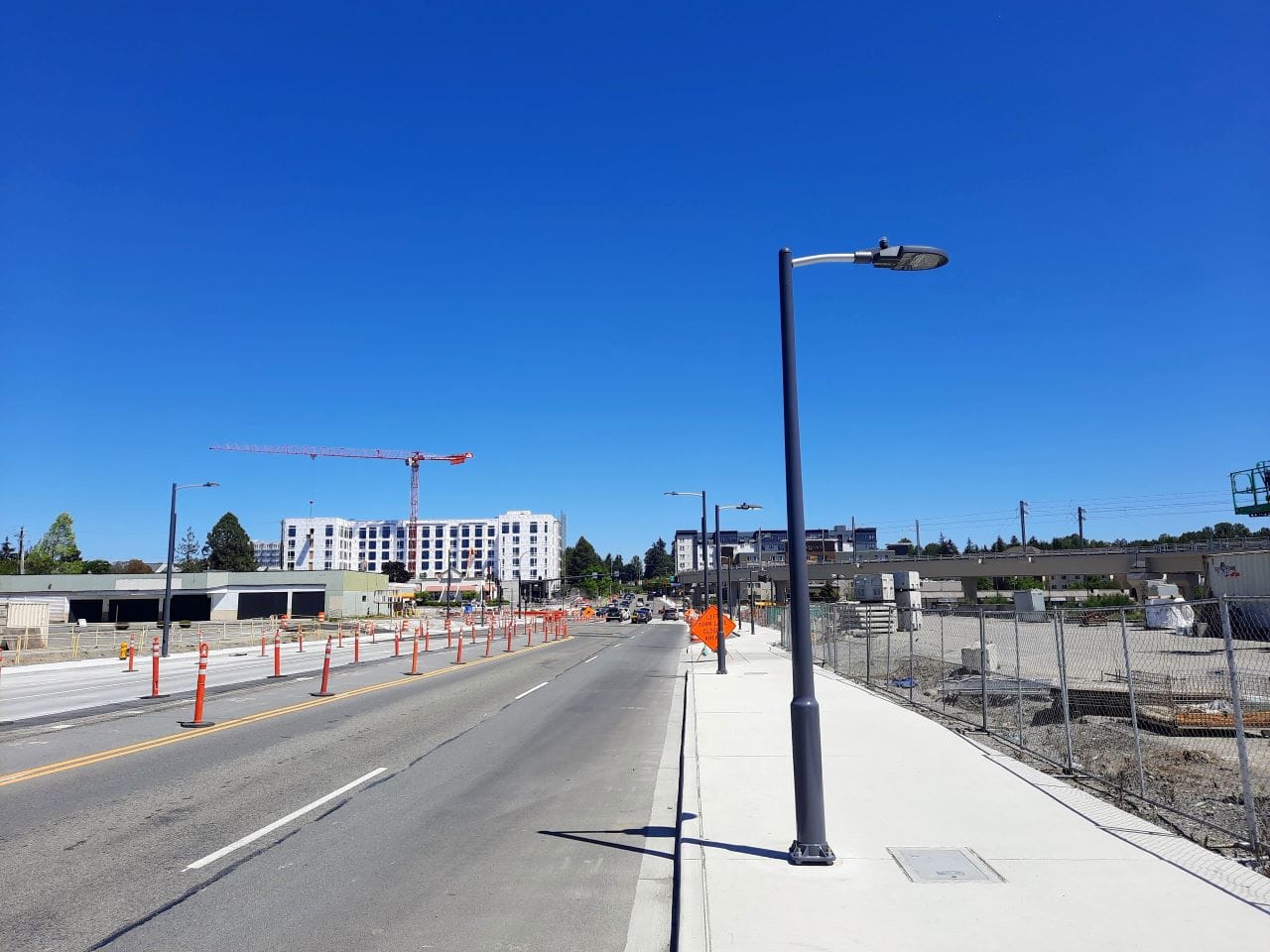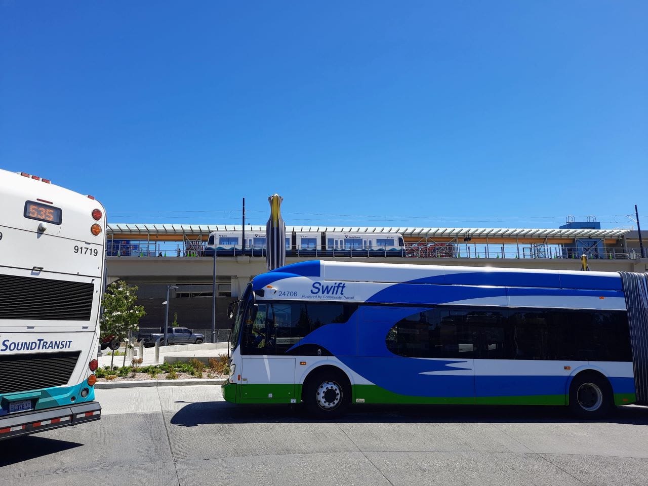 Community Transit recently launched the Swift Orange Line, greatly improving bus connections to Lynnwood City Center. The rest of Snohomish County’s bus restructure will wait for September 14 — two weeks after the launch of the light rail extension — as part of the fall service change. Lynnwood recently wrapped up a major expansion of its main east-west corridor of 196th Street SW, with the goal of moving more car traffic but also providing more reliable bus trips and adding pedestrian space.