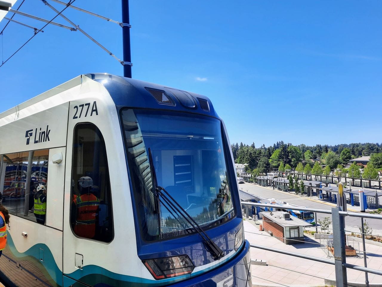 Trains heading to and from Lynnwood will run on lower frequencies than promised until Sound Transit is able to boost its fleet capacity with the full opening of East Link light rail across Lake Washington to the currently marooned train base in Bellevue’s Spring District. The 2 Line opened in an abbreviated form in April. Construction defects have delayed the opening of the I-90 segment of the 2 Line, but agency officials confirmed Friday corrective work will still appears to be on track to open that segment in late 2025, which would allow a full opening of the 2 Line and access to added train base capacity.