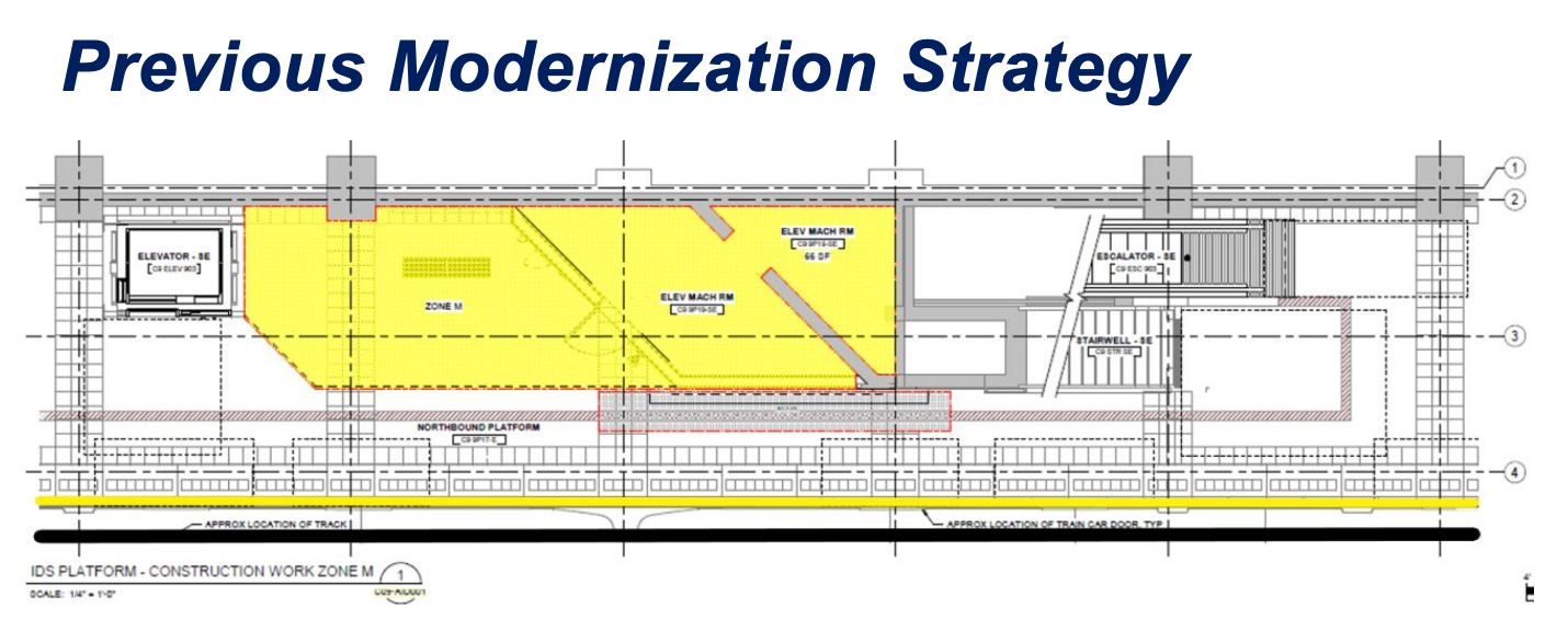 “Expansion specifications called for large programmable logic controllers for escalators, which would require the modernization effort to either build new machine rooms within stations or expand existing areas to accommodate the much larger controllers that would no longer fit within the existing footprint of the escalator,” Carini said. That would have a permanent knock-on impact to riders with less platform space as well as harsher temporary construction impacts.