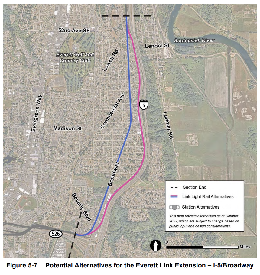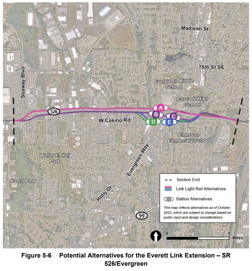 Alignment and station alternatives to be studied for the Everett Link light rail extension have been set. In June, the Sound Transit board adopted a slate of preferred and non-preferred alternatives to be further refined and evaluated in the Draft Environmental Impact Statement (DEIS). Conspicuously absent from the June vote were Everett Mayor Cassie Franklin and Snohomish County Executive Dave Somers whose jurisdictions are most impacted by the alternatives they largely engineered.