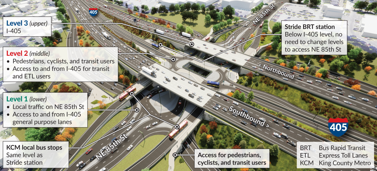 The S2 Line, connecting the corridor between Lynnwood and Bellevue, has slipped to a 2029 targeted opening. S2’s extra delay stem in part from delays to I-405 freeway construction projects onto which the Stride project was grafted. For example, Sound Transit is spending more than $287 million on the NE 85th Street/I-405 interchange in Kirkland to carve out a freeway station from a new triple-decker interchange.
