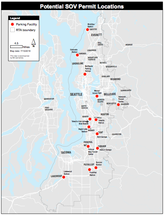 - Three other regional transit center park-and-rides (i.e., Federal Way, Issaquah, and Mercer Island).