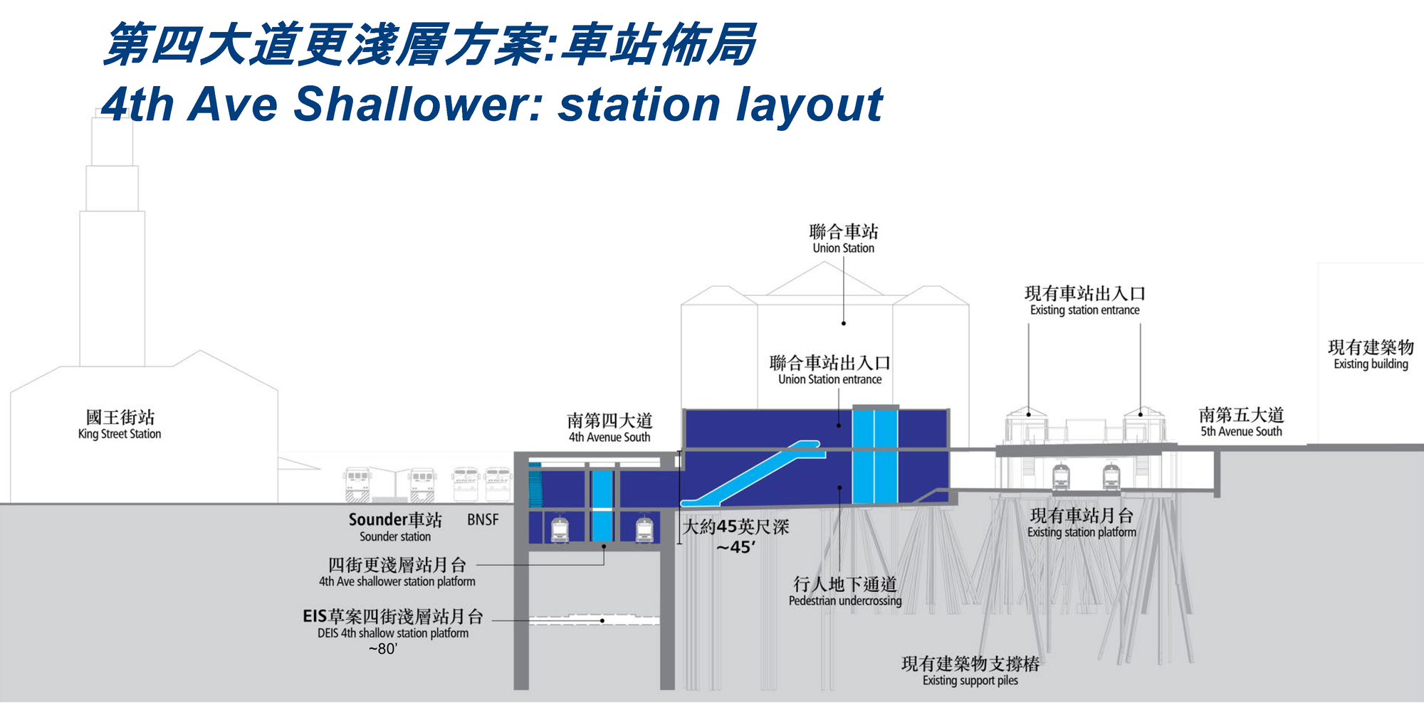 - The shallower tunnel forgoing the unnecessary additional transfer also makes the system more resilient: People of all abilities will be able to get to Sounder and Amtrak, even when 1- and 2-line trains are full;