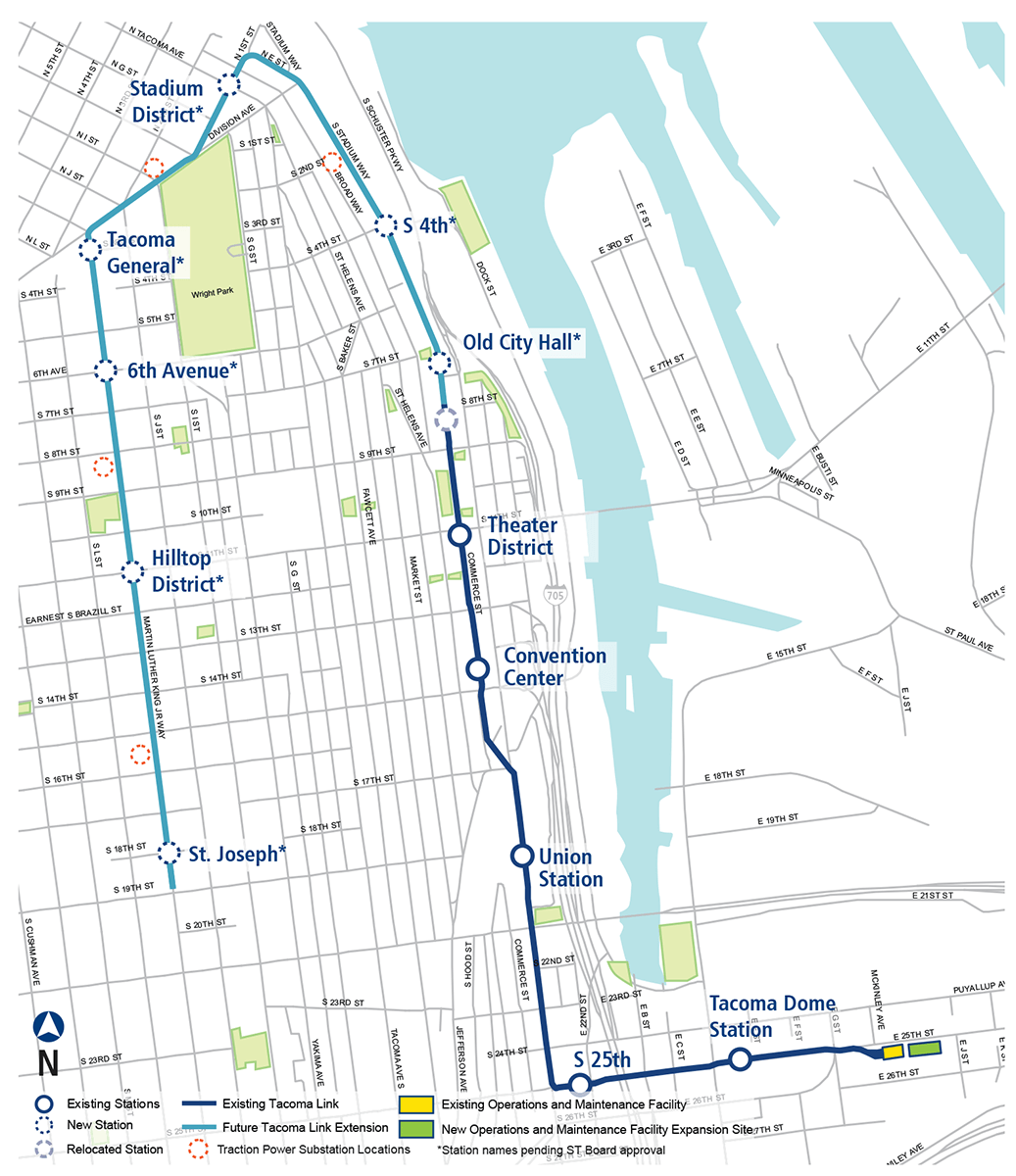 Further into the future, Tacoma Link is planned to be expanded as far as Tacoma Community College and connect with — but not operate on — the Tacoma Dome Link Extension from Federal Way. Originally, the Tacoma Link extension to Tacoma Community College was planned to open in 2039, but all bets are off now as the Sound Transit board of directors grapple with increased project costs and capital program realignment. Recent scenarios suggest several years of delay to opening the extension, such as 2041 or 2044.