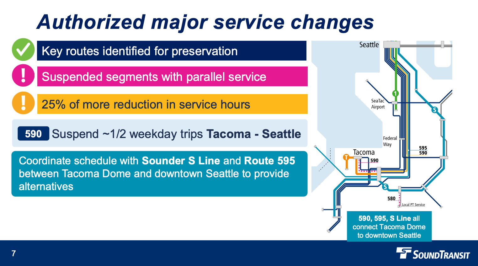 In addition to the major service suspensions, Sound Transit is planning to modestly reduce service on three other routes.