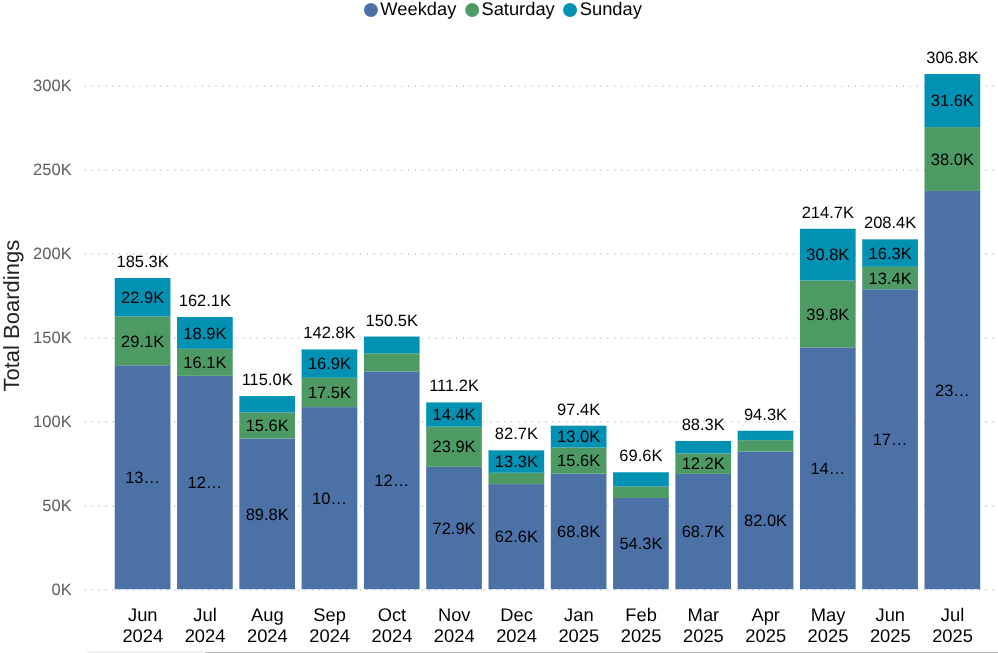 “Love these ridership numbers,” Balducci said in a Bluesky post in response to the latest ridership numbers. “This is why we fight to provide more and better transit. People want and need these services!”