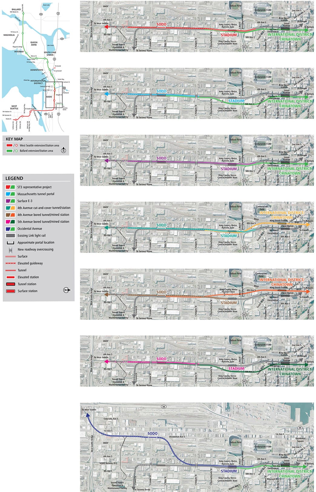 - Chinatown-International District: $200 million less for the E-3 surface busway (5th Ave S cut-and-over tunnel) option;