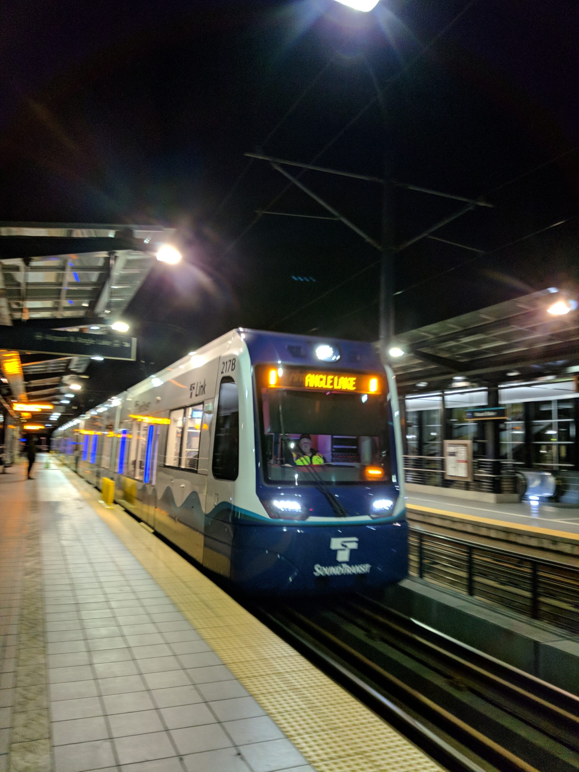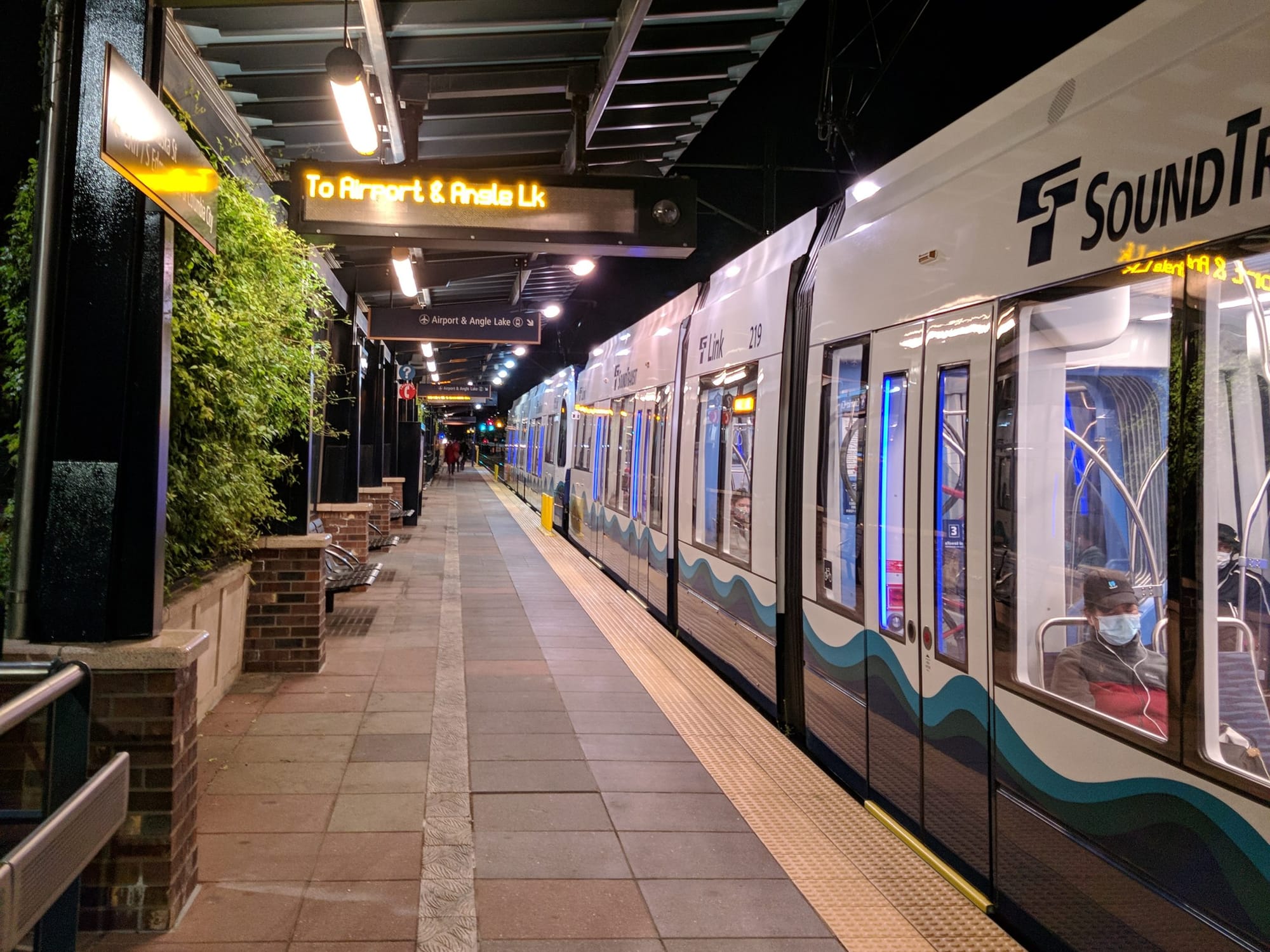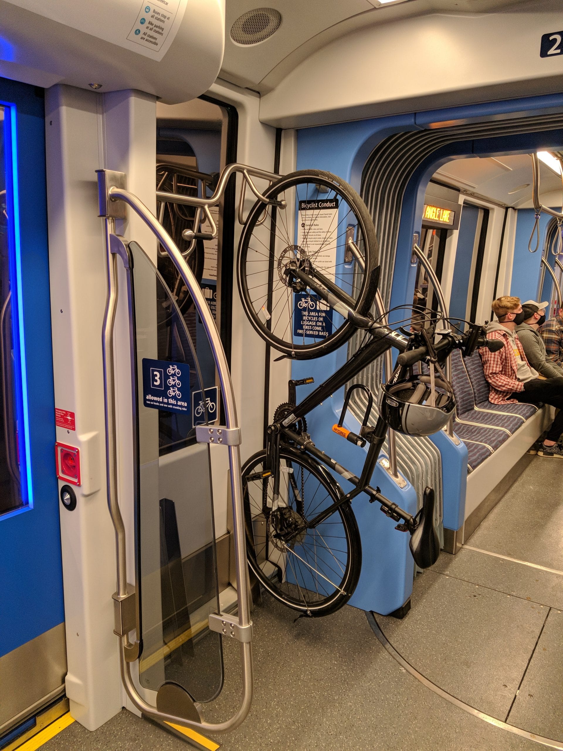 Inside, the new Link trains are kind of like that feeling you know something’s off, but can’t pinpoint exactly what it is, or sort of different while overall being very much the same. The seats are different, for one. They’re now a fabric version of the newer bus seats, and are mostly okay to sit on. You can put your suitcase under them too. Also, the floor is gray now instead of blue, if it makes a difference.