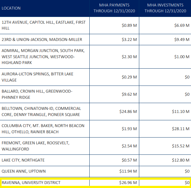 I tracked down all the Mandatory Housing Affordable (MHA) choices that developers in the U District have made — that are their own articles. The vast majority have decided to pay into the Office of Housing’s affordable housing pool. Only a few have chosen to provide affordable performance units, none of them are in the highrises coming to the U District. It might make sense for the Seattle Office of Housing (OH) to invest in affordable housing in the U District, but neither they nor their nonprofit partners haven’t invested any there and the U District has contributed the most to the fund.