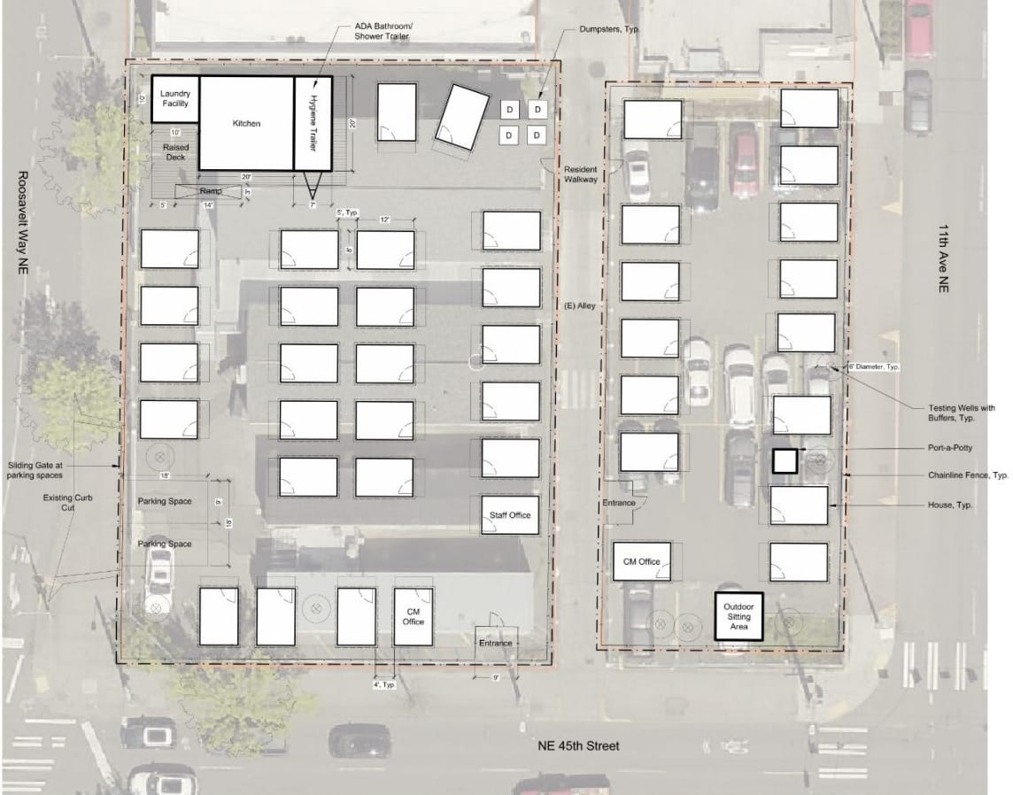 In recent history, the parcel has played home to a drive-through bank and Sound Transit’s construction staging. It’ll soon be a tiny house village with a two-year lease on the parcel. Rosie’s Tiny House Village, according to numbers recently reported by news outlets, will have 36 units to serve up to 50 people with 24-hour on-site staffing. Like the other tiny house villages, it will have restrooms, showers, laundry, dining, a community kitchen, spaces for meeting, and community gatherings. So far, it looks like Sound Transit’s U District planning will also help the region address the housing crisis with new residential units. How many of them to make affordable housing is among the questions surveyed by the agency.