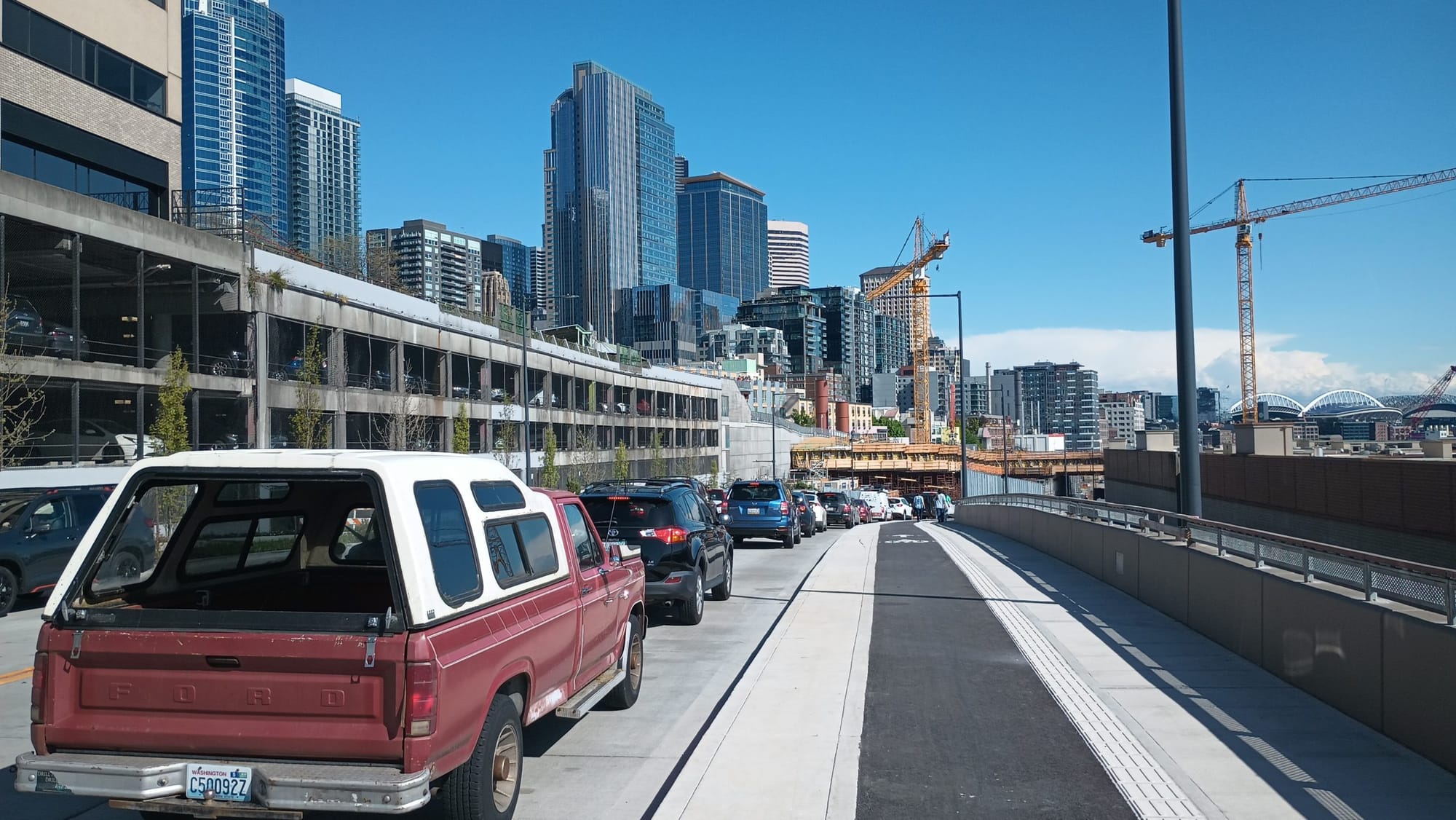 Even though traffic volumes are headed up, the number of vehicles using the tunnel could be headed for another major reconfiguration. It’s anyone’s guess what will happen to SR 99 tunnel volumes now that four-lane Elliott Way, which provides a quick, toll-free route through Belltown to and from the northeast quadrant of the city, bypassing the at-grade railroad crossing at Broad Street. Now that the final segment of the completed waterfront roadway is open as originally envisioned, the permanent trends in the tunnel can actually play out. On the other hand, potential long-term construction impacts to I-5, as part of the years-long Revive I-5 program could send drivers looking for an alternative through the tunnel.