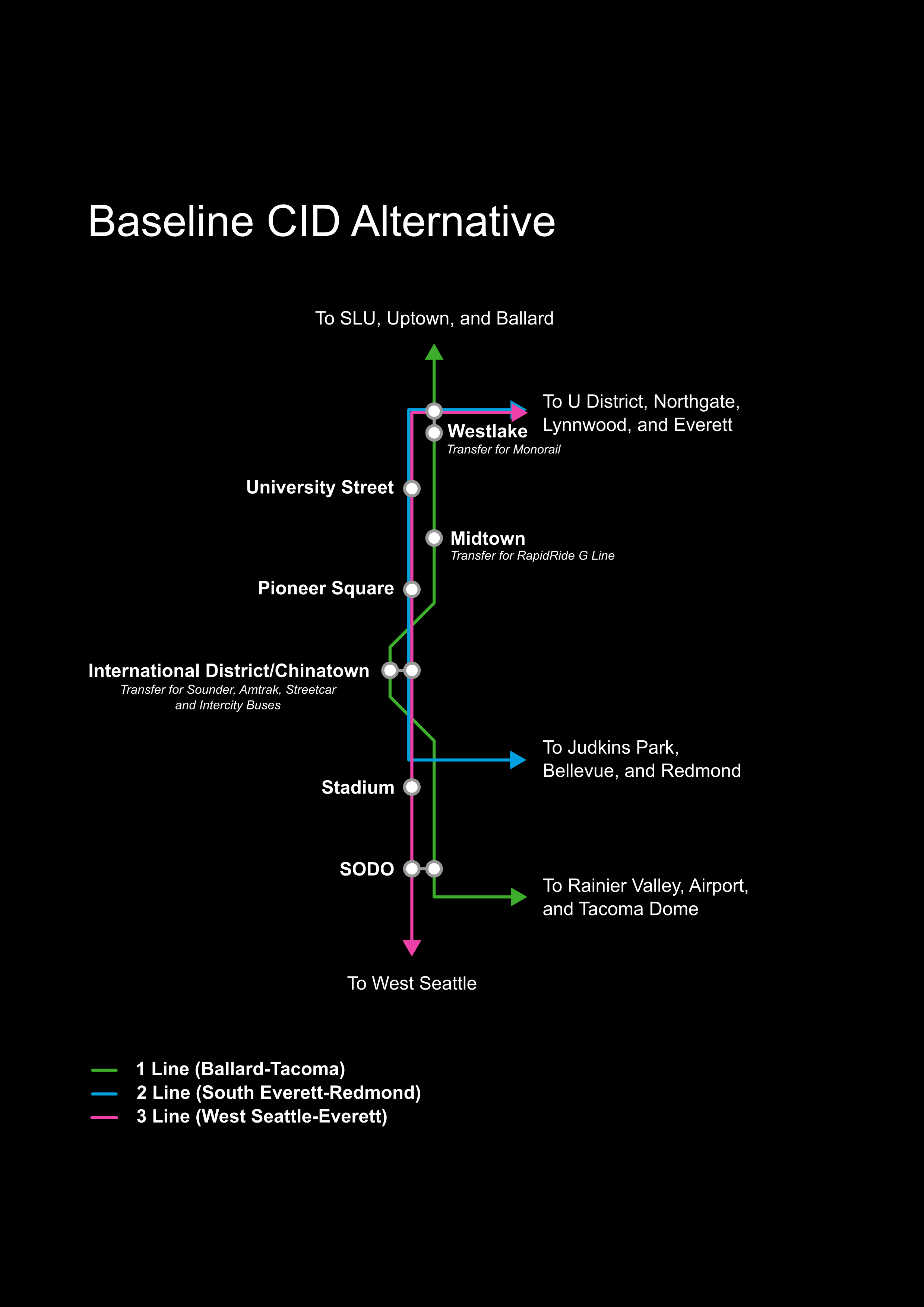 Other, off-the-cuff options that are being floated shift the vital southern transfer deep into downtown, resulting in confusing labyrinths, backtracking commutes, and other ridership-crushing delays. South Seattle would no longer be able to access Chinatown without passing it and backtracking. Visitors from SeaTac would not have a one-seat ride to hotels south of Yesler Way.