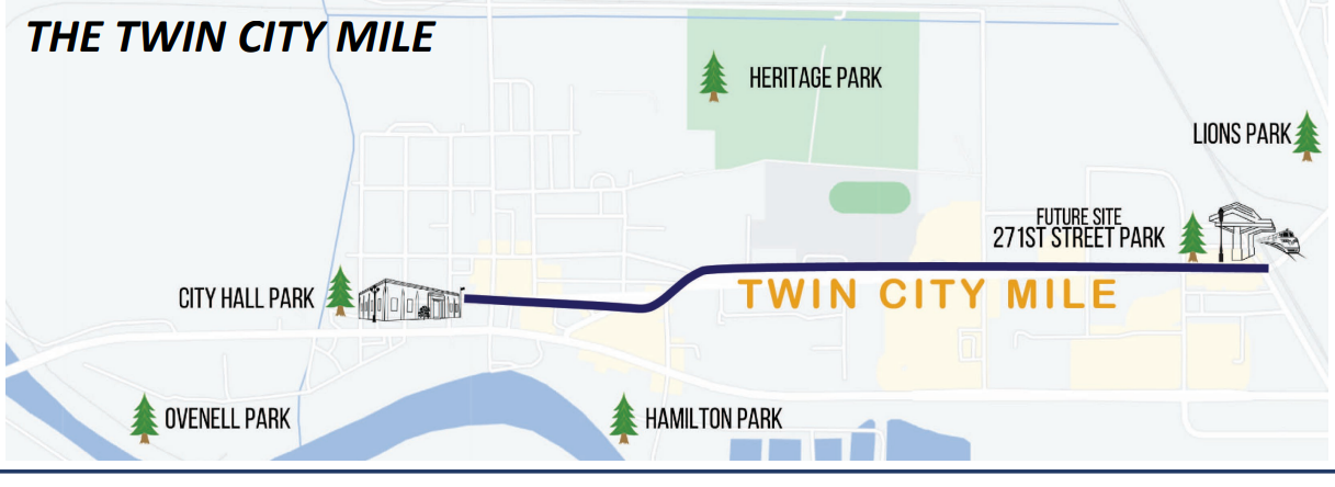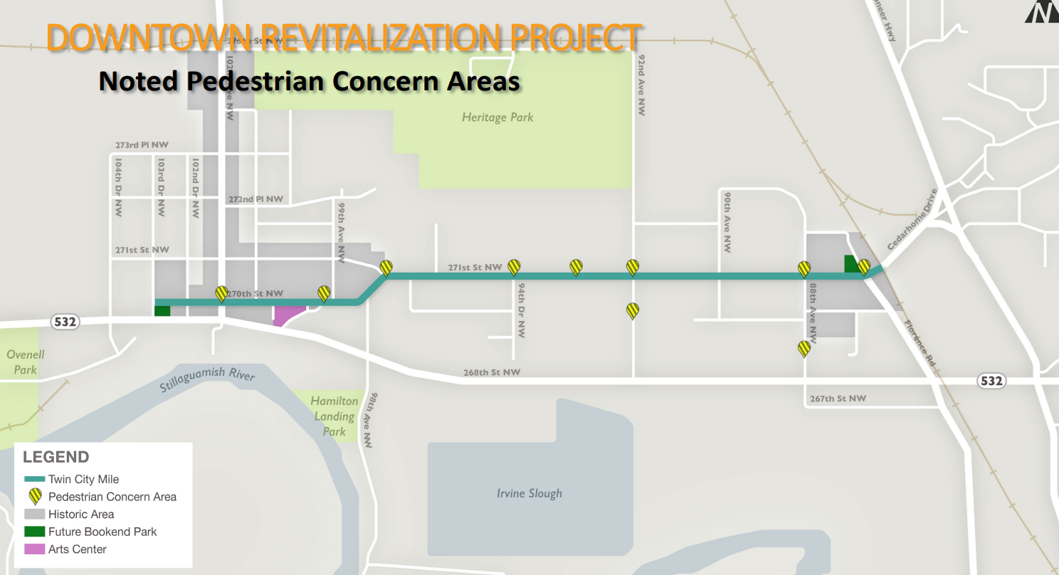 The downtown revitalization proposal, which is being called the Twin City Mile, is seeking to improve walkability and street life along 270th Street NW and 271st Street NW, a mile-long stretch of the main streets in Stanwood that connect the Amtrak train station to City Hall Park. The proposal suggests widening sidewalks, adding engaging storefronts, planning for street festivals, creating usable urban park spaces, public art, and promoting the concept of buying local. Stanwood has a survey out gathering feedback on the idea through the end of today (May 20th).