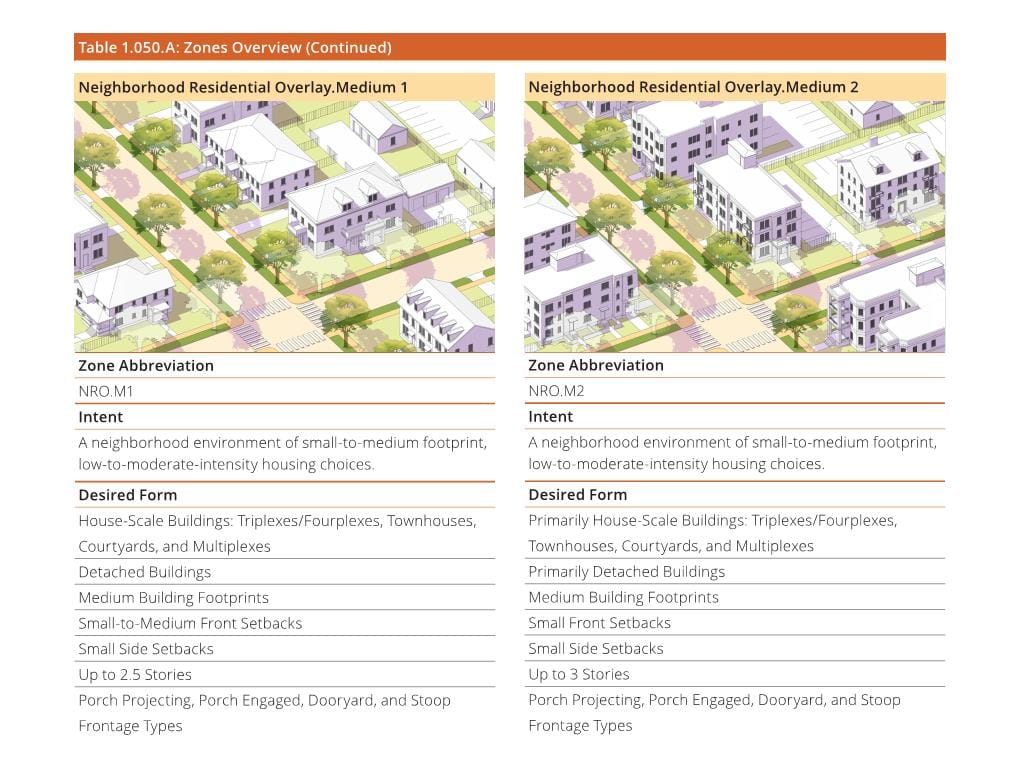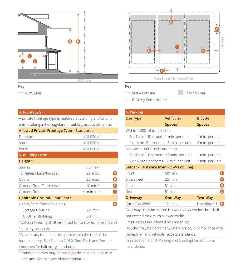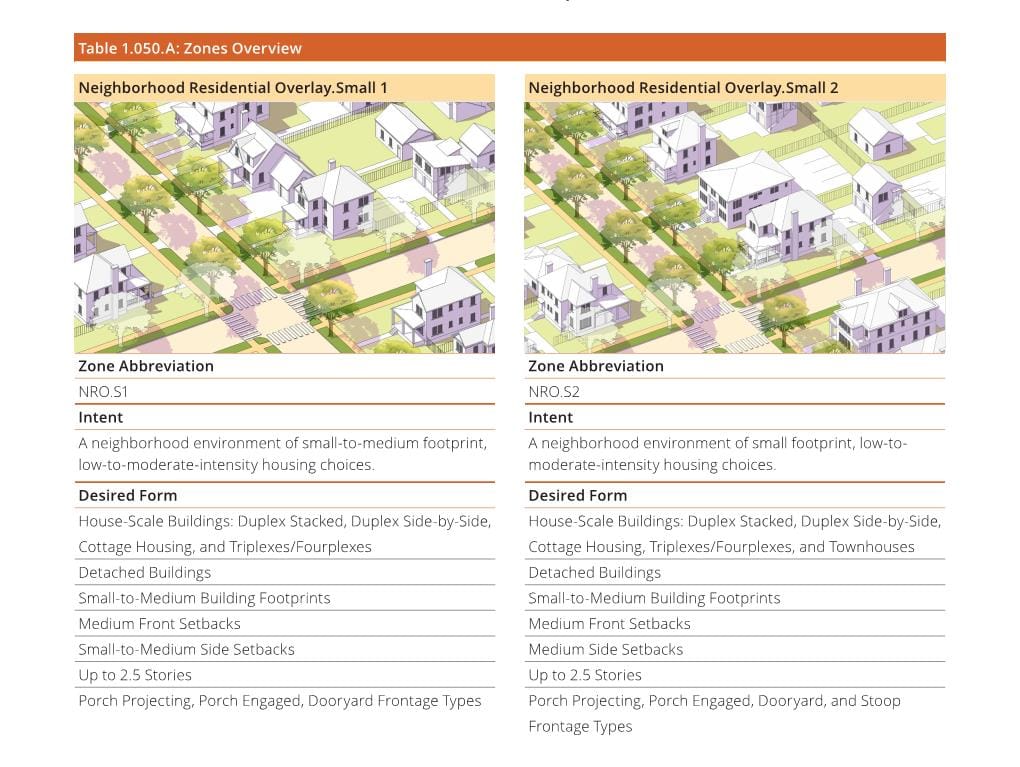 In May, a focus group of planners, developers, and architects previewed a draft ‘Toolkit’ that illustrates four strategies that local governments could overlay on their residential zoning to allow new denser housing types within existing detached single family neighborhoods. The foundation of this toolkit is a form-based code meant to create ‘objective’ standards for middle housing that can be applied widely.