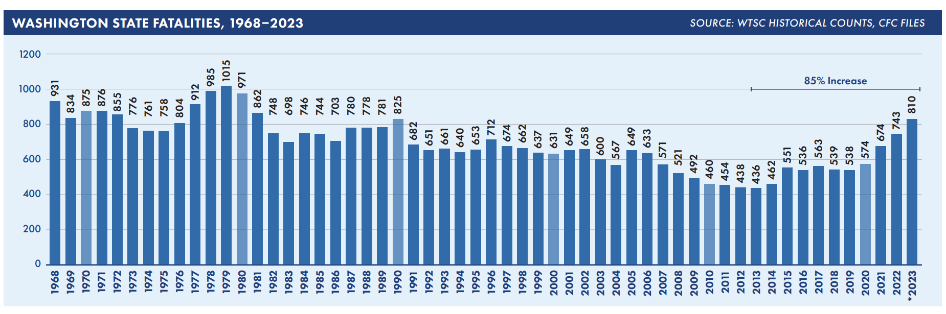 This update is the seventh refresh of the state Target Zero plan since 2000, when Washington became the first state in the country to commit to eliminating serious injuries and fatalities from traffic crashes. The plan issues a call for “bold and urgent action,” as current traffic safety trends are heading in the wrong direction. Washington roads saw 85% more fatalities and 78% more serious injuries in 2023 than in 2013. Those 2023 traffic fatality totals returned the state to numbers not seen since the early 1990s.