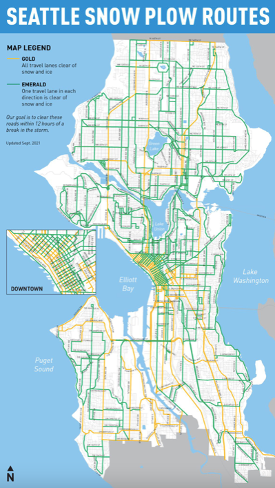 In addition to its planned snow plow map, the City of Seattle also offers an interactive storm response map offering updated data on which streets have been plowed.