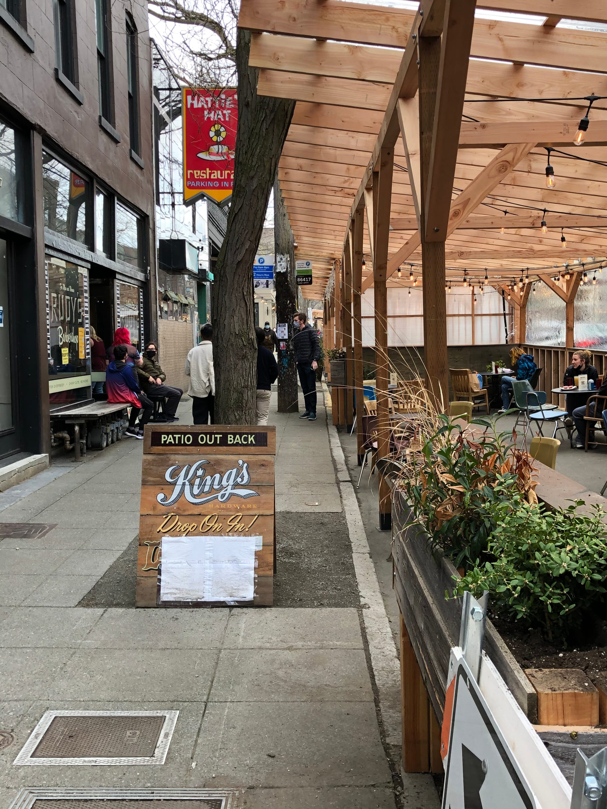 It was not immediate getting here. Through fits and starts over the summer, businesses were promised and coached and then put on another lockdown before finally getting the first permits to open outdoor dining in August. Then, businesses put up more temporary structures just in time to need heaters for the fall. This ran into new issues with the fire department, who frowned upon blasting propane in vinyl tents. Last October, the program was extended through October 2021.