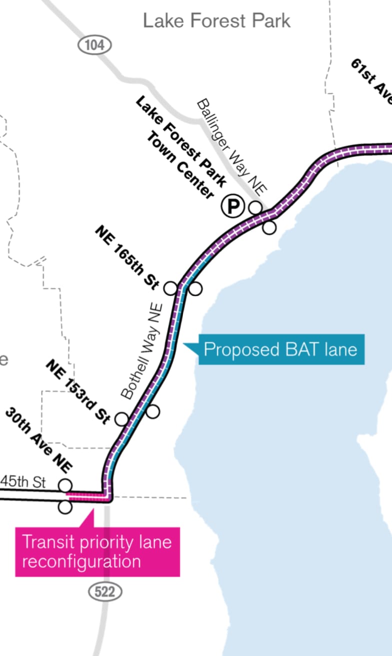 As for the S3 Line, Sound Transit has completed construction of the Bothell-Kenmore business access and transit (BAT) lane on SR 522.