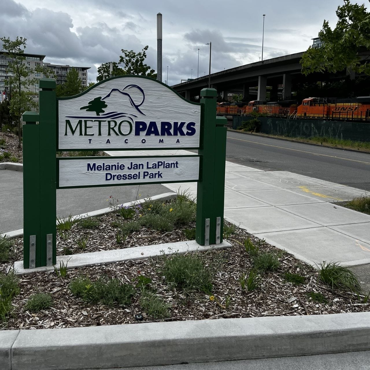 The park’s namesake, Melanie Jan LaPlant Dressel, a founder of Columbia Bank and community booster, is commemorated through a plaque at the park’s entrance.