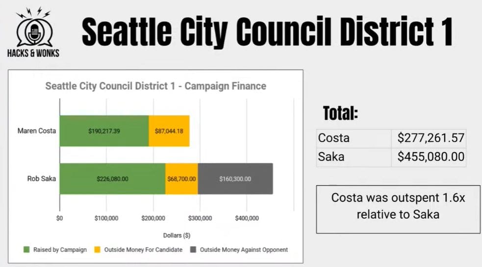 Rob Saka ended up winning rather easily despite Maren Costa’s ability to unite labor, urbanists, environmentalists, and all of her primary opponents against Saka. Thus, one thing this race showed was that endorsements from eliminated primary challengers in a race don’t matter that much. Saka did just fine without them. He had labor fairly united against him as well, but that did not slow him down. He has the endorsement of Mayor Bruce Harrell and the Seattle Times, and that proved to be enough.