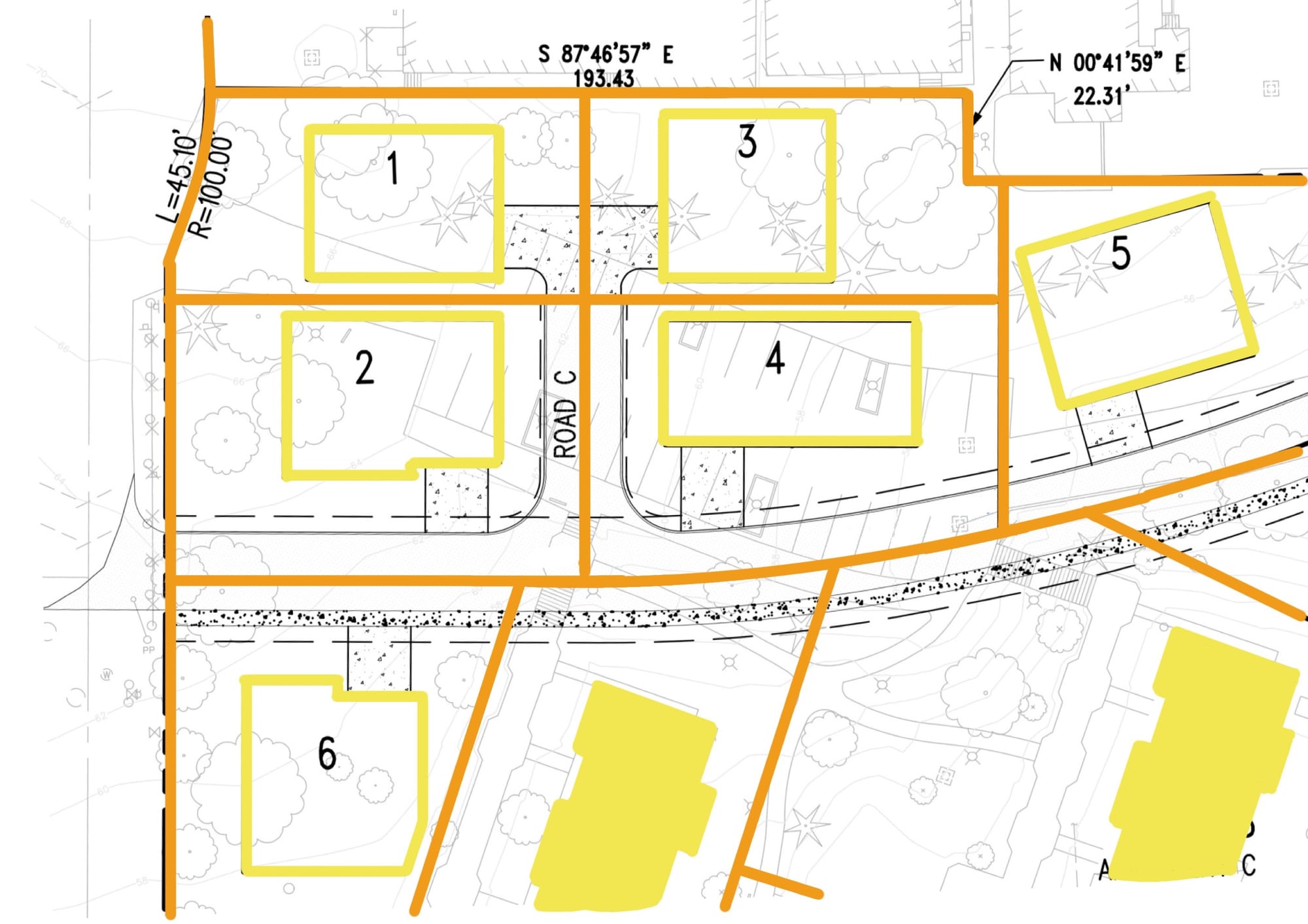 - Yellow – House lots