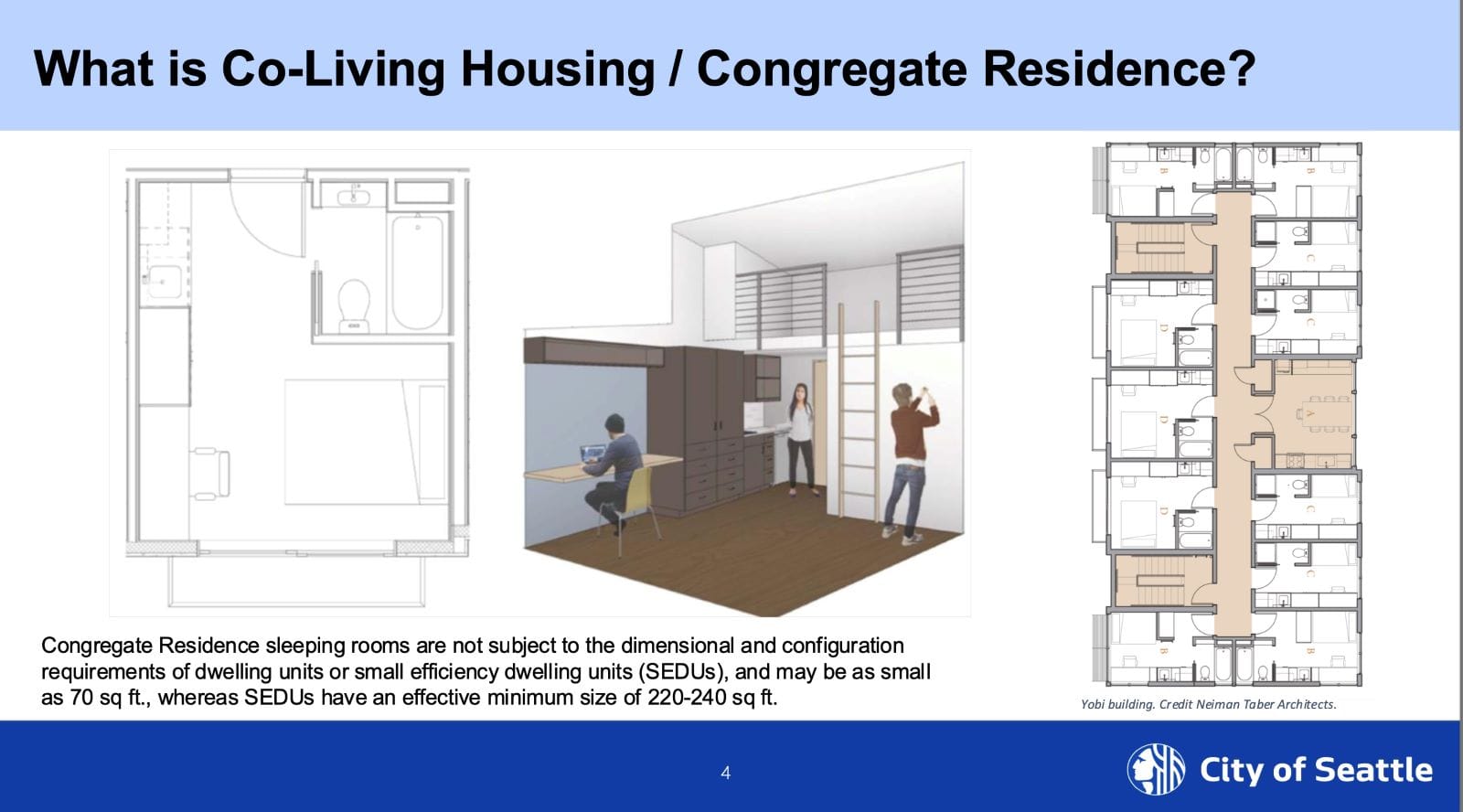 According to Day, the Office of Planning and Community Development (OPCD) has reviewed the report and “believes that the regulatory supports and incentives the City has passed and continues to work on can support the type of co-living housing studied by Pew and Gensler.”