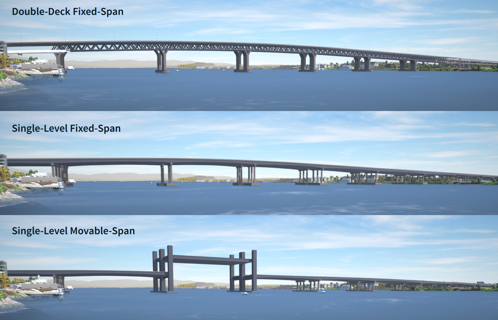 In the event the coast guard requires a movable-span bridge that lifts for maritime traffic, the funding gap would grow to a staggering $13 billion and add another two years to the project timeline, with work not wrapping up until 2035.
