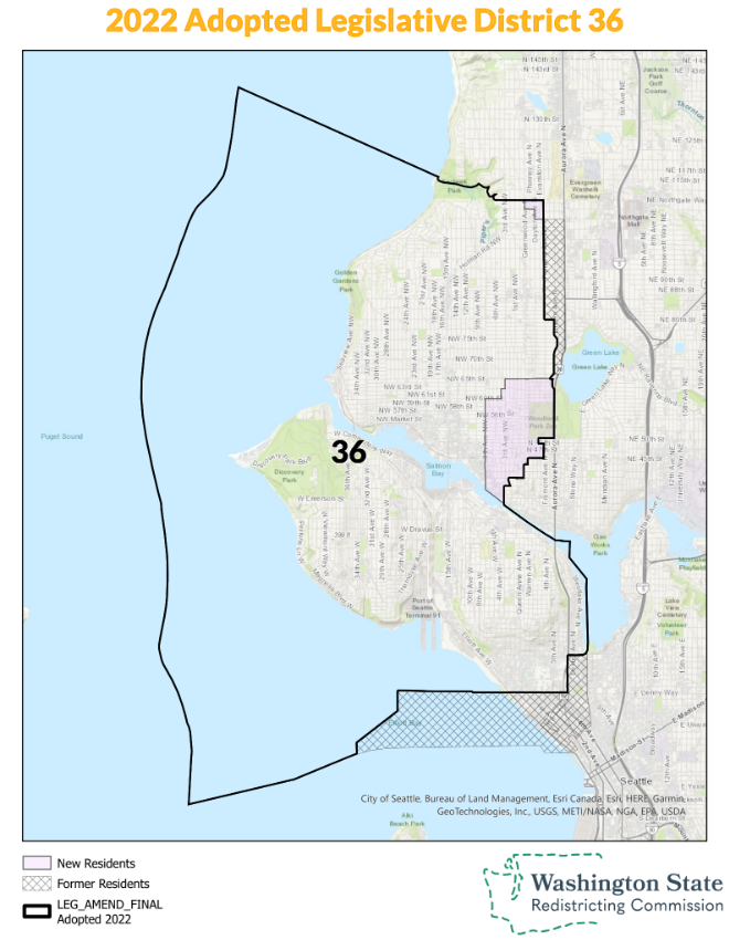With redistricting going into effect this election, the 36th District has lost Belltown, its chunk of South Lake Union, and a narrow band along Aurora Avenue north of Woodland Park. In its place, the 36th picked up all of Phinney Ridge, West Woodland, and a bit of Fremont. The political lean of the district remains progressive, however.