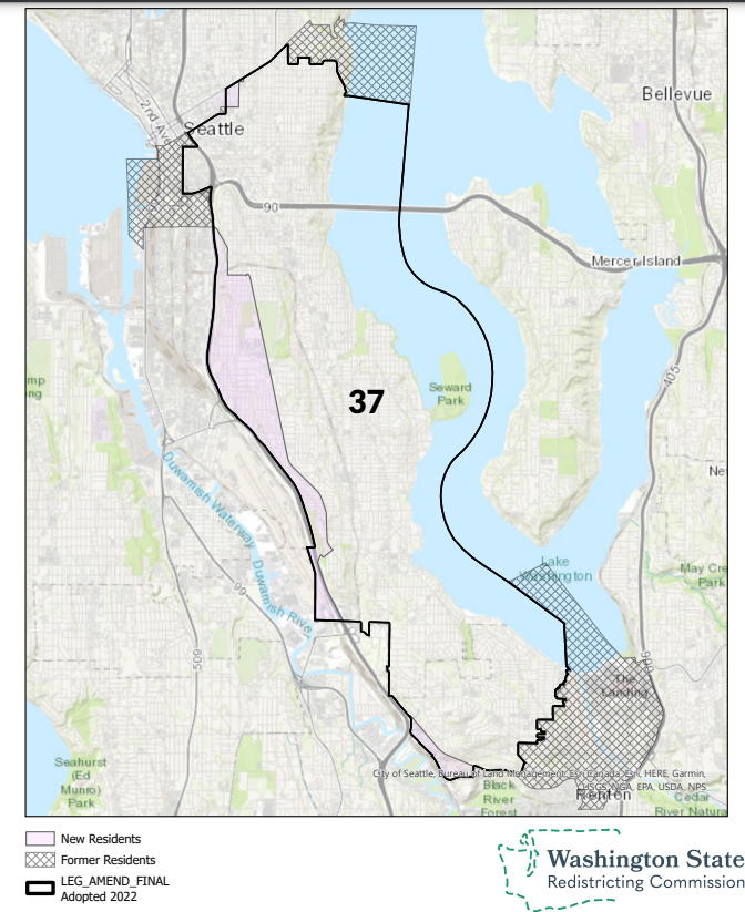 In redistricting, the 37th District lost SoDo, Pioneer Square, part of Madrona, and a chunk of Renton. In gained the western edge of Beacon Hill and a piece of Seattle University campus. The new map is even more centered around Southeast Seattle, and is a decidedly left-leaning district.