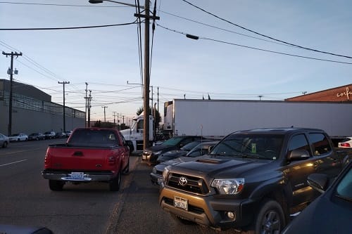 And this doesn’t even begin to address how our transportation system undervalues pedestrians. Walk along any street in Seattle and you’ll have to stop at every light and wait–lights are timed for cars. Don’t forget to click the walk button or when the light turns green, you won’t get a walk signal. Make sure you are there, present, waiting for the light to change or you won’t have time to cross. And make sure you are focused and diligent about your own safety because there will inevitably be a few cars that run the light, a driver surging forward for that “free right-hand turn”, or a frantic commuter trying to make the left-hand turn between oncoming traffic. There may be a bus turning, blocking two crosswalks and forcing pedestrians out into traffic, a distracted driver who hasn’t bothered to look up and flies through a red light, or an instant parking lot of cars blocking your crosswalk.